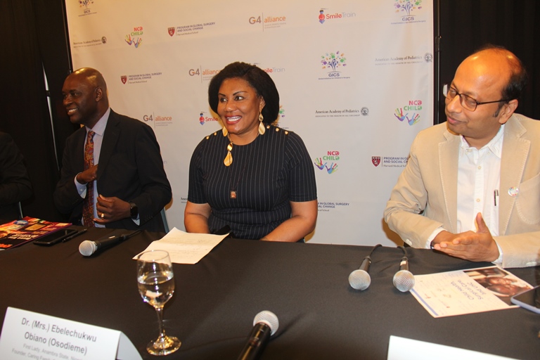 Pix 3 (L-R) The Panelist: President and CEO of IntraHealth International, Mr. Pape Gaye, Wife of Governor of Anambra State, Dr. (Mrs.) Ebelechukwu Obiano (Osodieme), and Dr. Gagan Gupta, a Maternal and Newborn Health Specialist MNH at UNICEF New York, at the High Level Dialogue in Global Surgery and Social Change on Child Health and Surgical Care held on 24th September 2019 at SmileTrain International Headquarters in Manhattan New York USA.